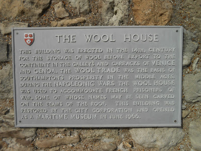 A couple of comments on the cruise. We left Southampton, traveled to France, Spain, Portugal, back to Southampton. We then spent a few days in England. What I enjoy the most and others who travel with me is the depth of history in Europe. I mean a lowly Wool House in Southampton is older than the discovery of the Americas. In the Reno area our oldest building is from the mid-1800's. But that Wool house or English wool had such an impact on fashion, costuming and history, all things near and dear to my heart!! To the interpreters of history, what a Story, the impact of sheep on fashion! One of my presentations was "Textiles and Fashionistas through History, Broad Edification of Portraits, 900-1800's" This Wool House went so well with my presentation I put it into the presentation.